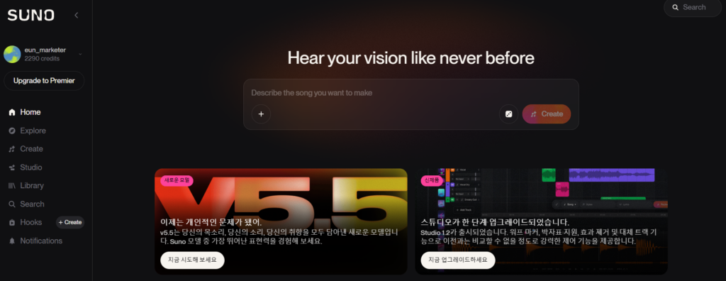 예전에는 음악 제작이 전문가의 영역이었다면 이제는 SUNO 노래 만들기 기능 덕분에 누구나 자신의 음악을 만들 수 있는 시대가 되었습니다.
