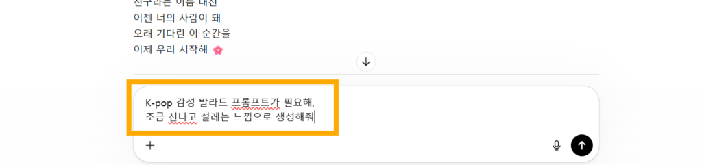 - K-pop 스타일 노래 가사 만들어줘