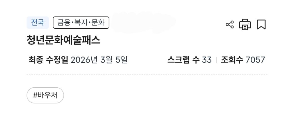 2026 청년문화예술패스는 선착순 지원 정책이기 때문에 신청 기간 확인이 매우 중요합니다.